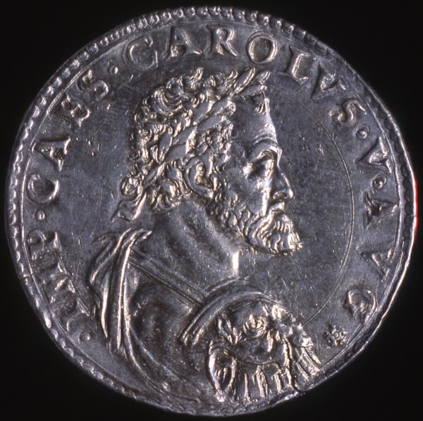 Es más, en los fondos de este palacio nos encontramos incluso con Carlos V, nuevo emperador vestido como uno antiguo. Del tiempo pasado quedan imágenes, instituciones, ideas atrevidas que se arrojan de mano en mano, en cada moneda. A todos, en lo que más contaba, Carlos iba recordando que el antiguo tiempo se renovaba con los explendores de un nuevo Trajano.