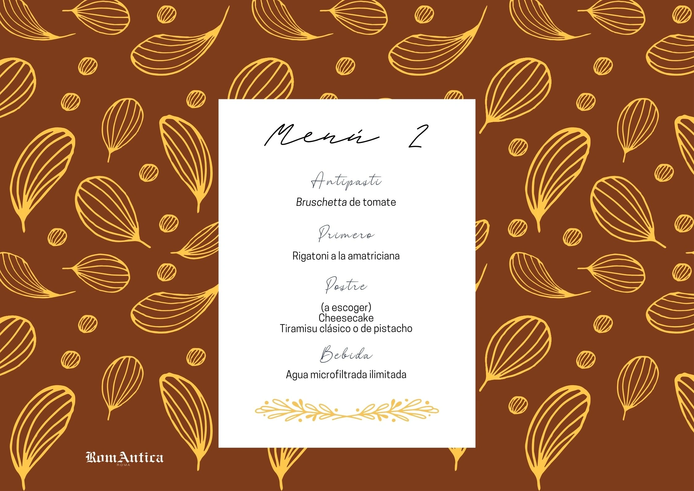 Menú en Restaurante RomAntica (en el centro de Roma)
