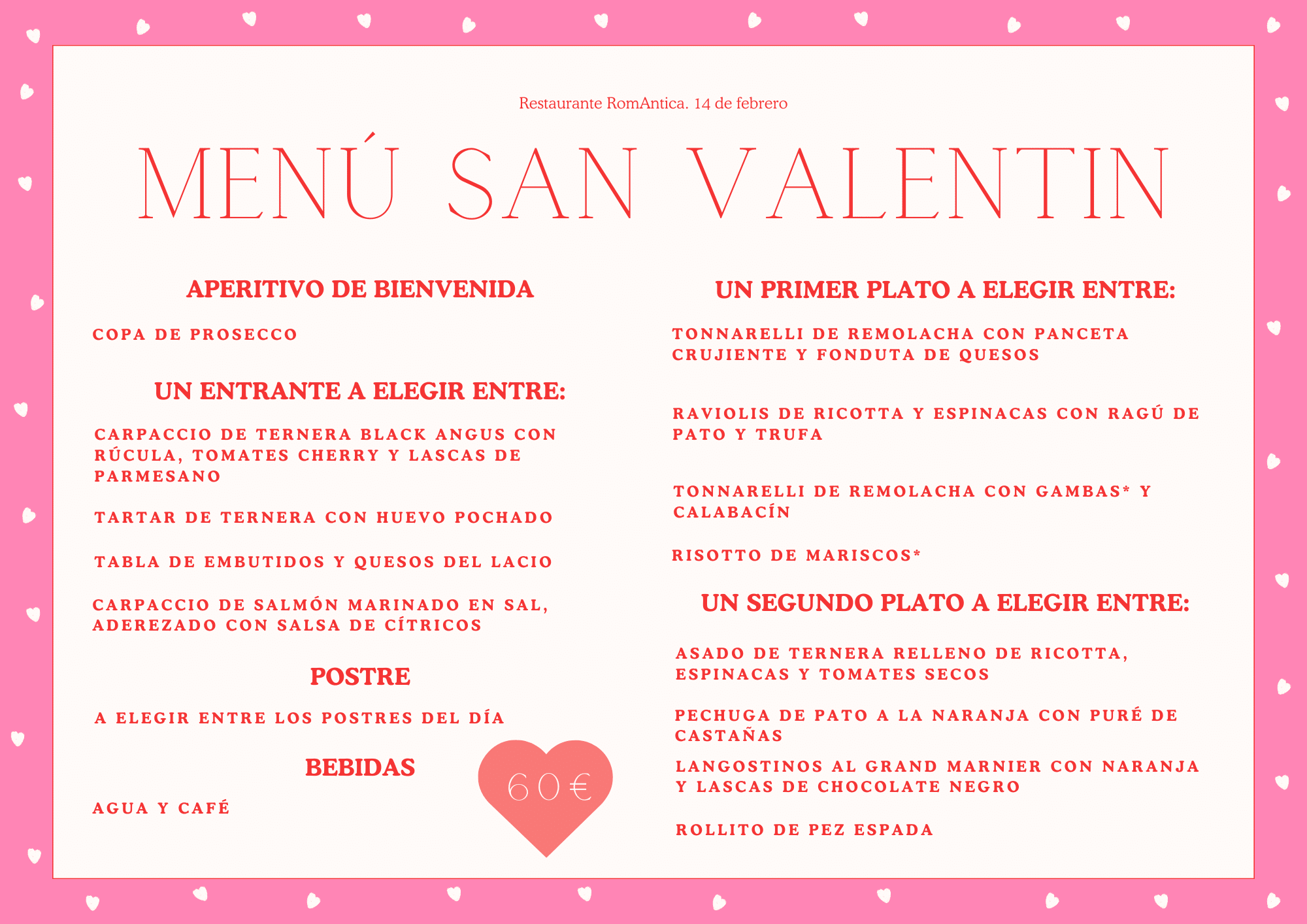 Además, si este 14 de febrero estás en Roma, sorprende a tu pareja con un exquisito menú, en una cena especial pensada para todos los enamorados.